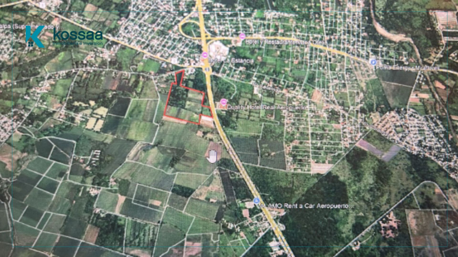 Terreno totalmente plano con frente a carretera principal, ideal para desarrollo comercial o industrial gracias a su cercanía estratégica al aeropuerto internacional.